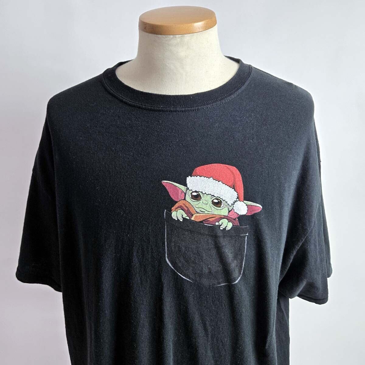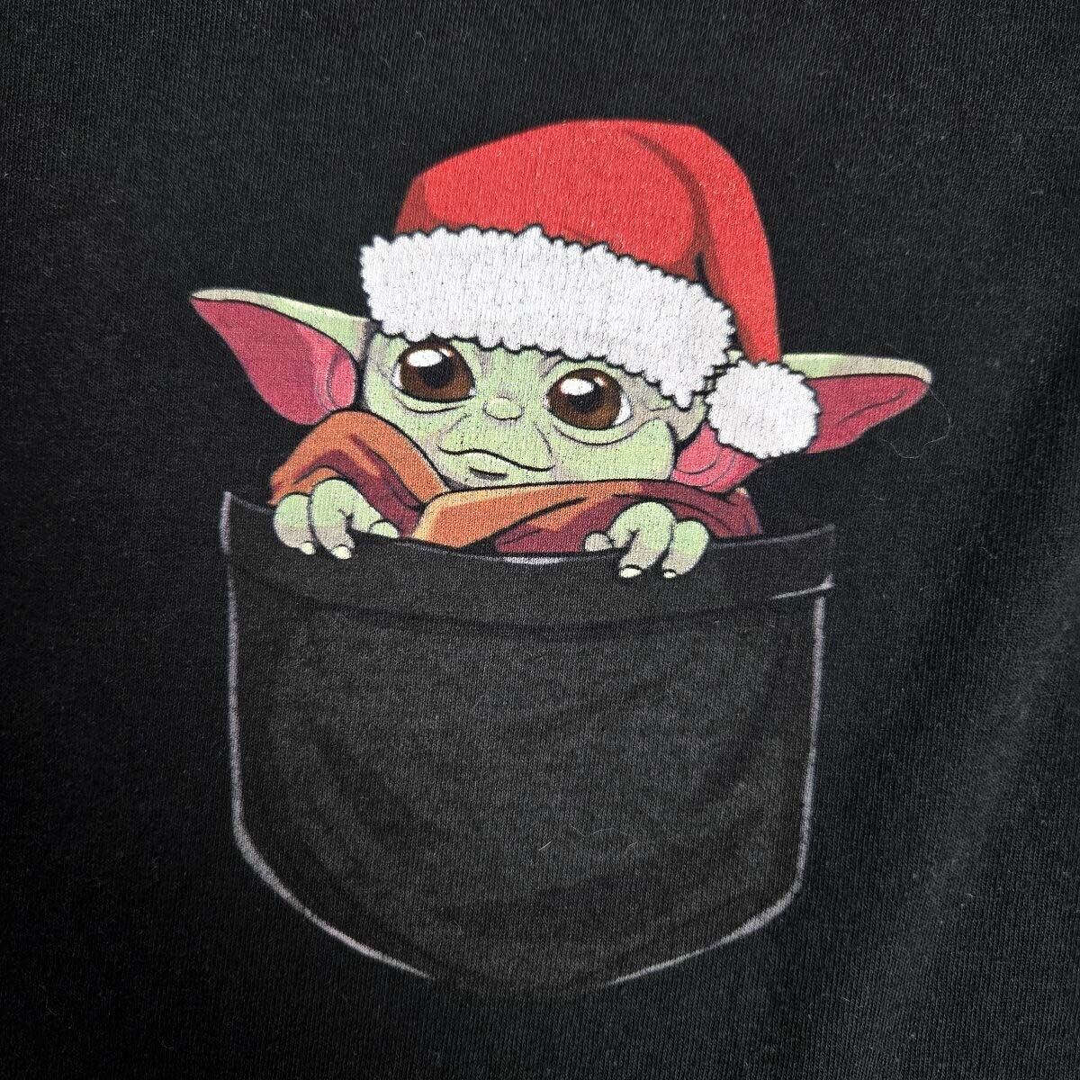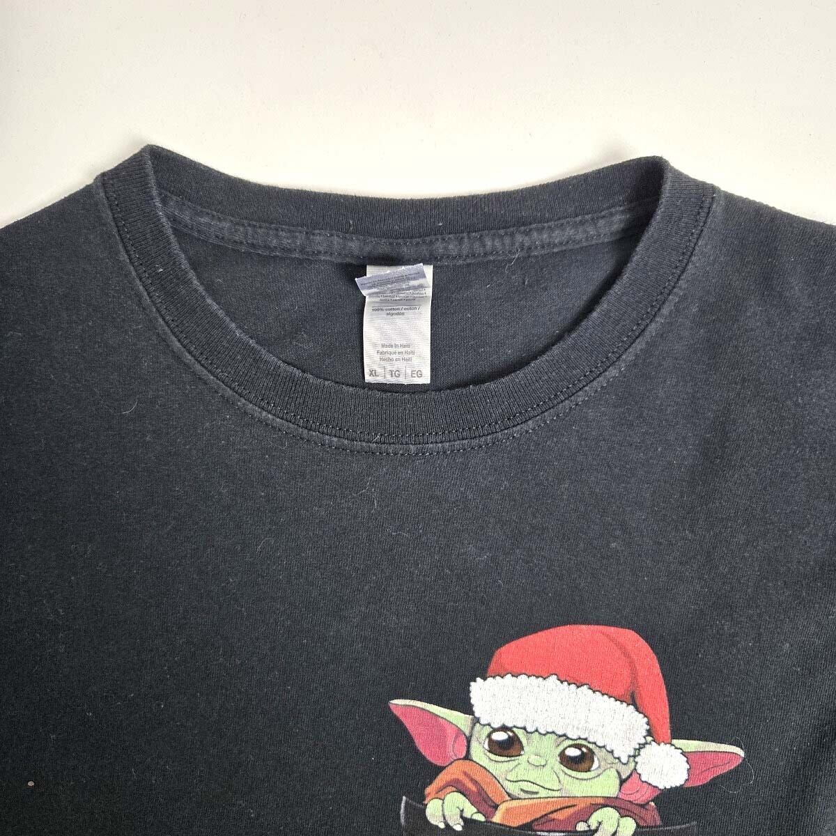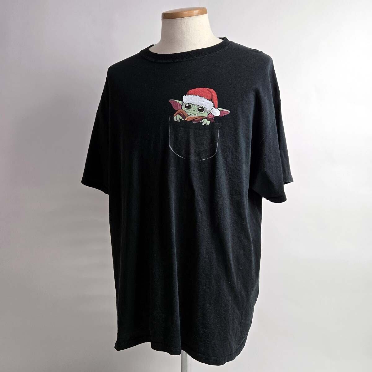 スターウォーズ ザ・マンダロリアン ベビーヨーダサンタプリントTシャツ だまし絵 XL ブラック ギルダン製 m0423-19