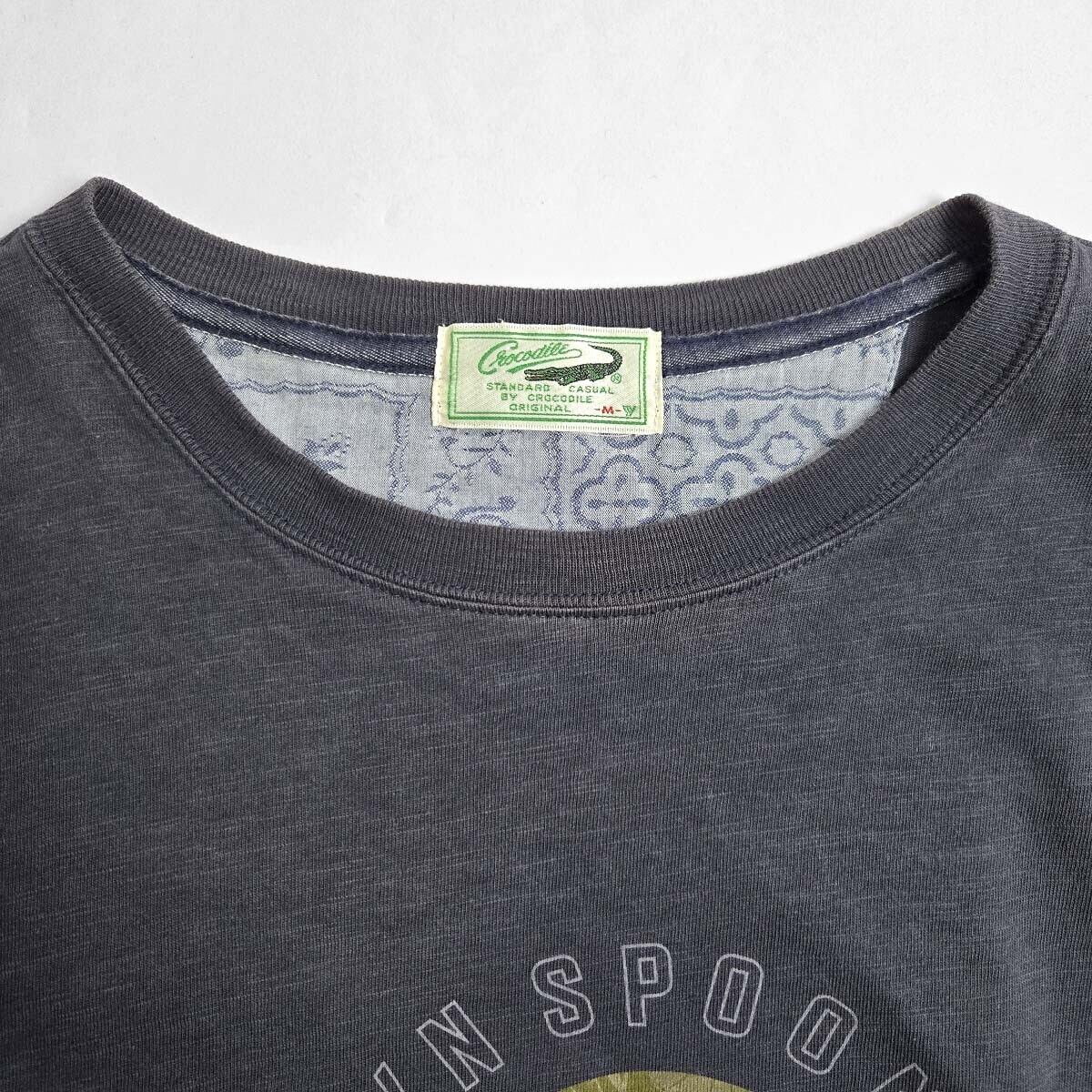 クロコダイル×レインスプーナーコラボ ハワイアンフラガールプリントクルーネックTシャツ M ネイビー m0717-9