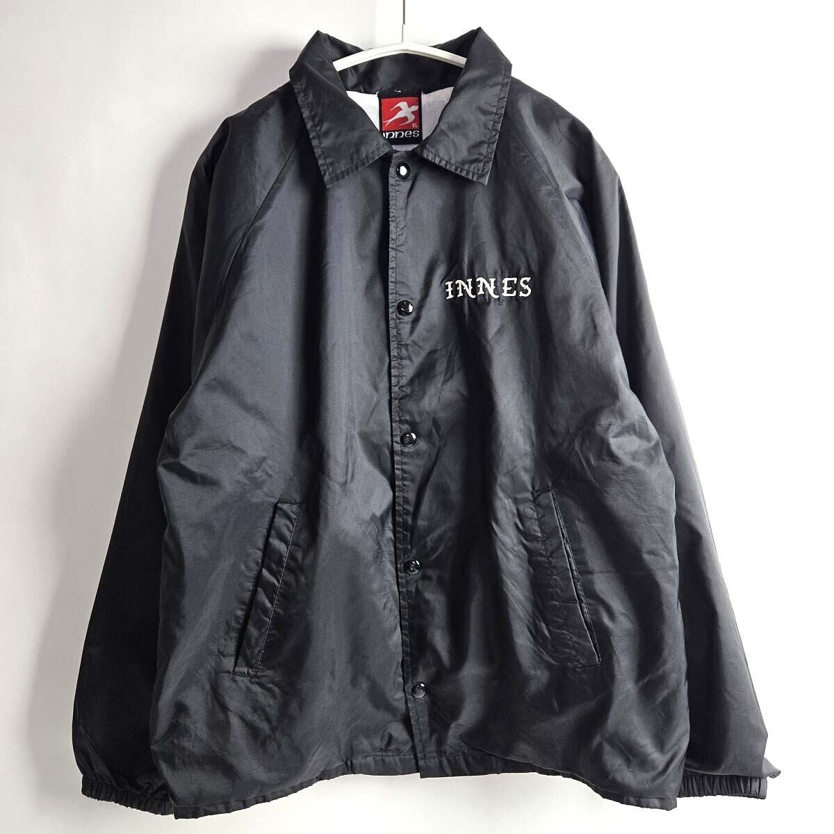 90’s00's イネス iness スケートボード ロゴ刺繍プリント コーチジャケット ウィンドブレーカー 裏トリコット起毛 XL ブラック 希少ブランド m0716-15