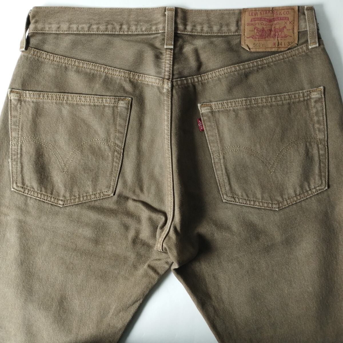 リーバイス Levi's 00501-0000 90's メキシコ製 ボタンフライ 後染めブラウン カラージーンズ 赤タブ 紙パッチ 釦裏647 W34 m0718-7