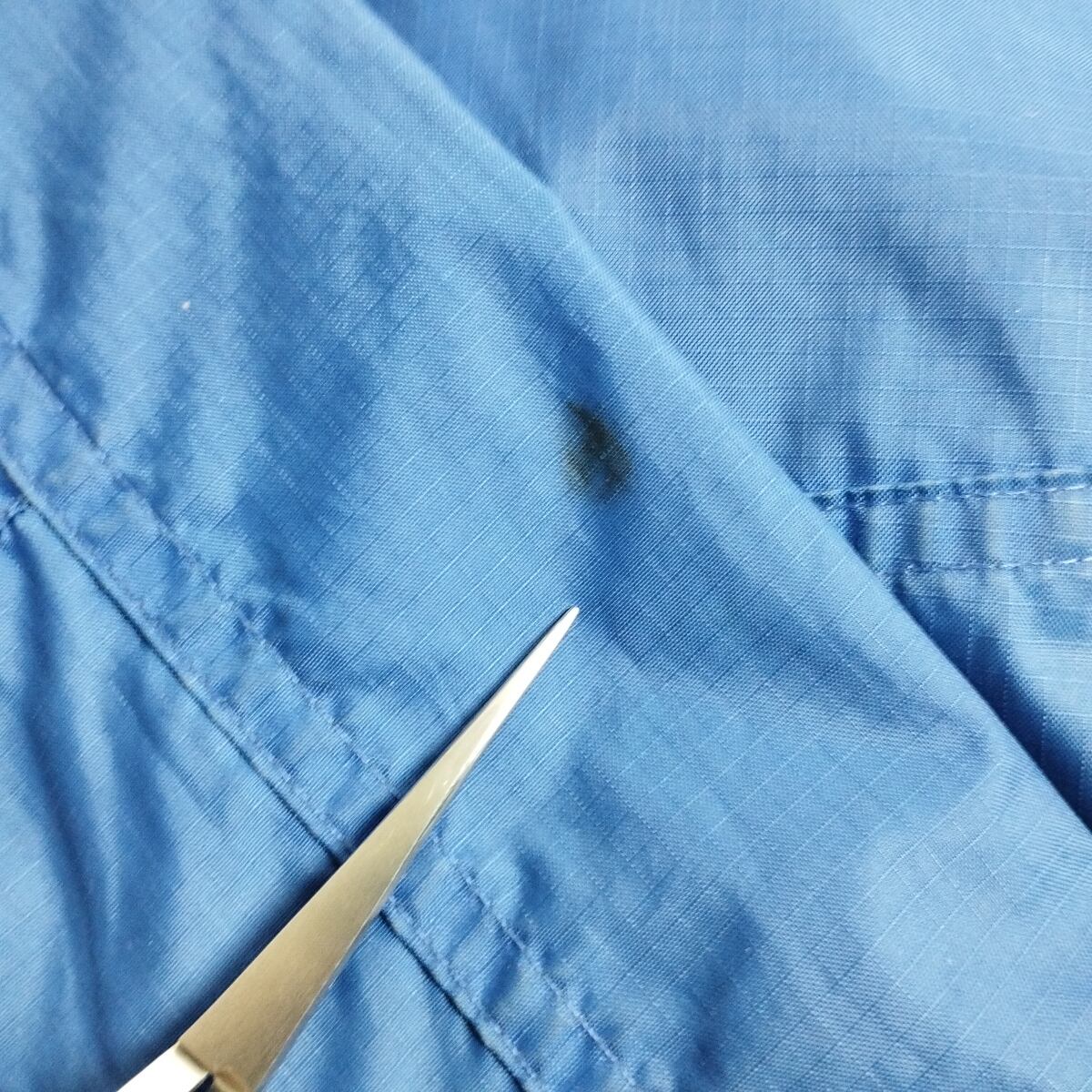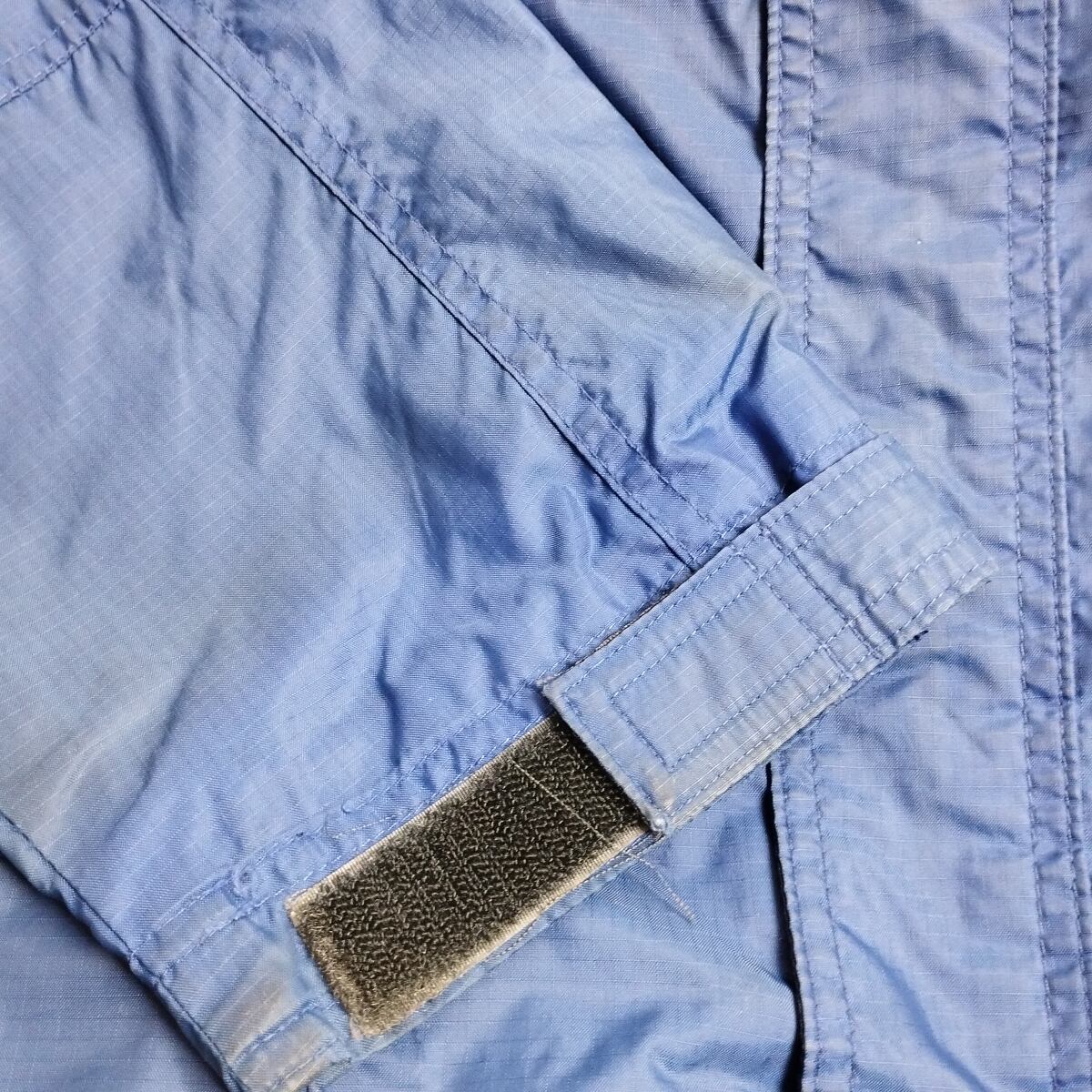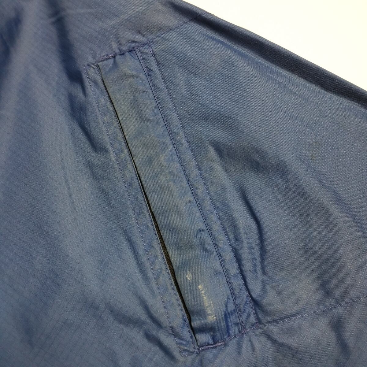 【備考】後ろ身頃の切替部分の縫製が約12~13cm程ほつれています。襟周り、肩、袖、ポケット付近などに汚れや変色がございます。