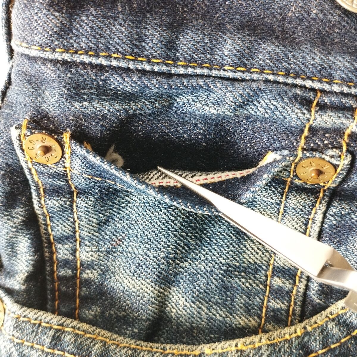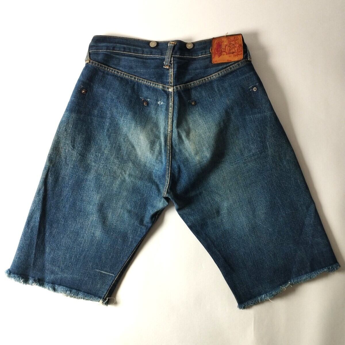 【備考】最初期エヴィスジーンズ2501XXのカットオフです。サスペンダー釦付きです。ヒップポケットが外されています(リベットは残っている)全体に多少の汚れ、ステッチ切れなどございますが着用に差支えのあるダメージは見受けられません。