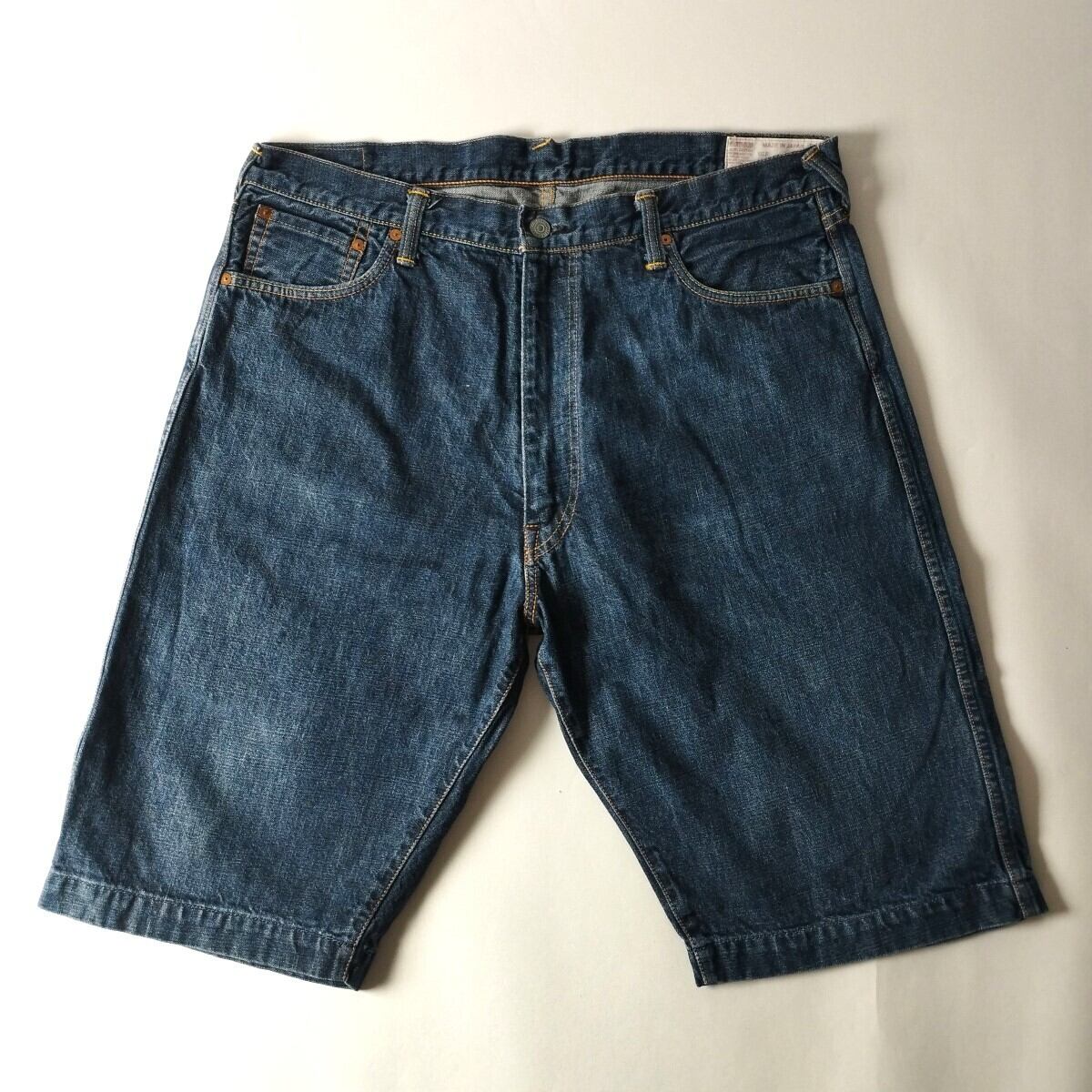 エヴィス EVISU 7001 デニムハーフパンツ ユニバーサル製ジッパーフライ 白カモメ 両面赤タブ 布パッチ W38 日本製 m0723-4