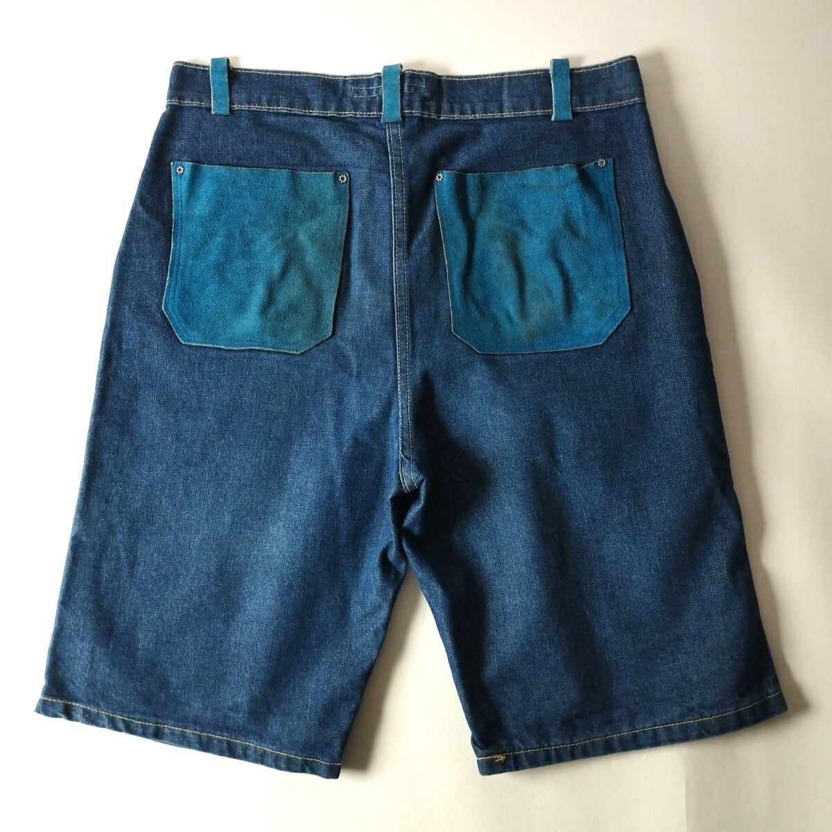90’s Hermosa work clothing スエードレザー切替デニムハーフパンツ ショーツ W36 m0723-13