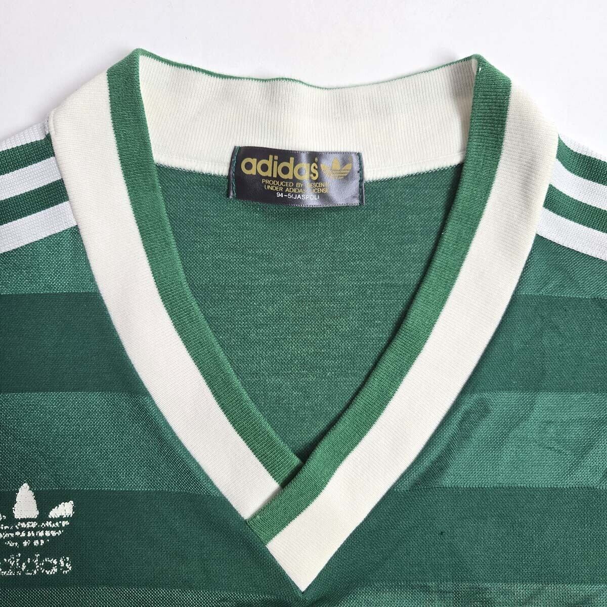 80’s アディダス adidas デサント トレフォイルロゴVネックゲームシャツ L グリーン ヴィンテージ 日本製 m0801-3