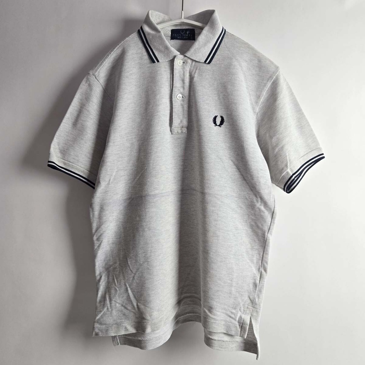 90's フレッドペリー FRED PERRY コットン100% 月桂樹ロゴ刺繍カノコポロシャツ 半袖 S ライトグレー ヒットユニオン 日本製 m0806-11