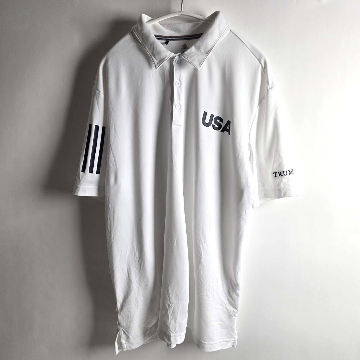 アディダス adidas パフォーマンスロゴ USAプリントTRUMPゴルフクラブ3Bドライポロシャツ 3ストライプ XL ホワイト m0808-12