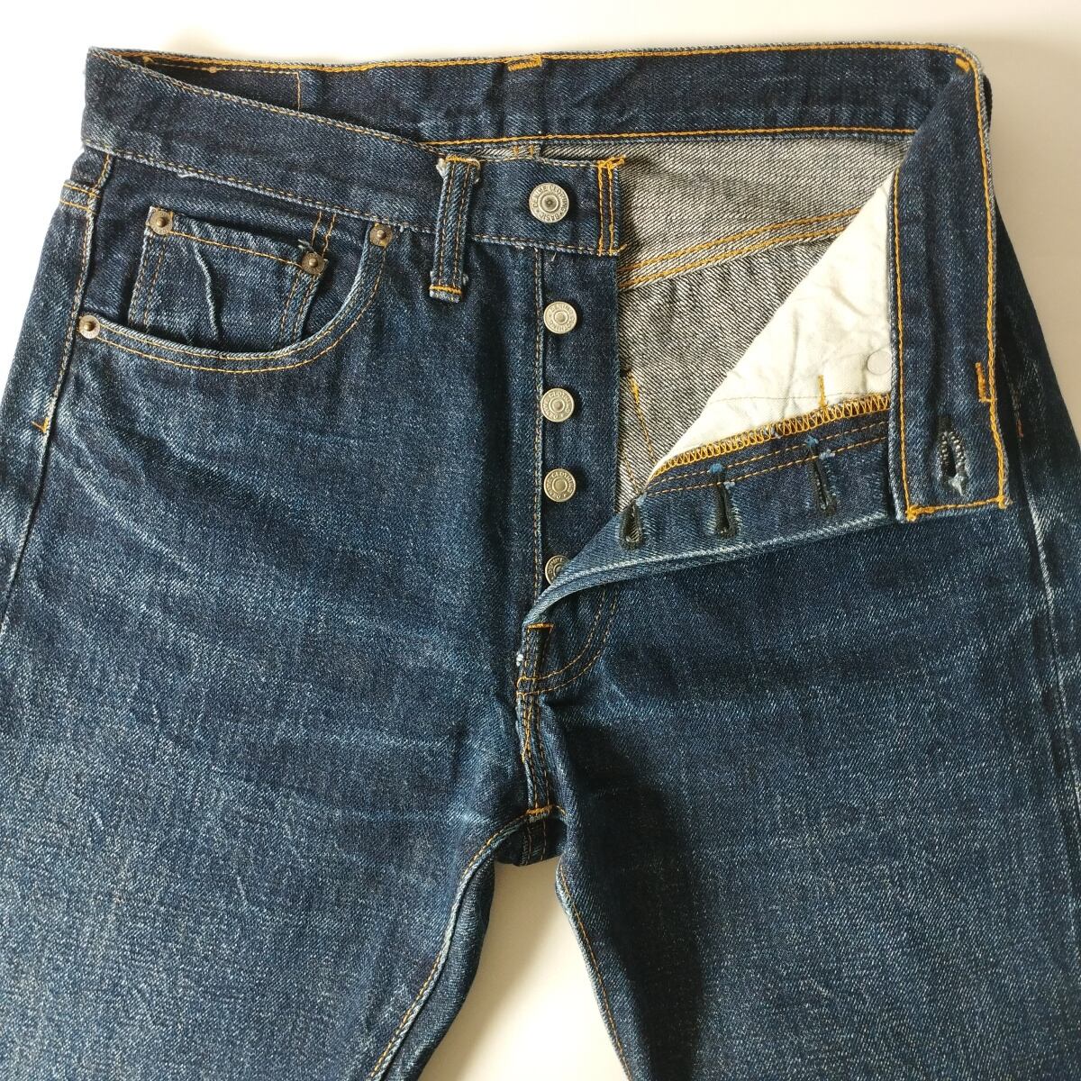 【備考】旧ドゥニーム66モデル、501タイプレプリカジーンズです。髭、蜂の巣、耳のキャタピラ状のアタリなど良い色落ちになってきております。色残りもございますので、これから更に履きこめば濃淡の効いた風合いあるジーンズに育つことと思います。