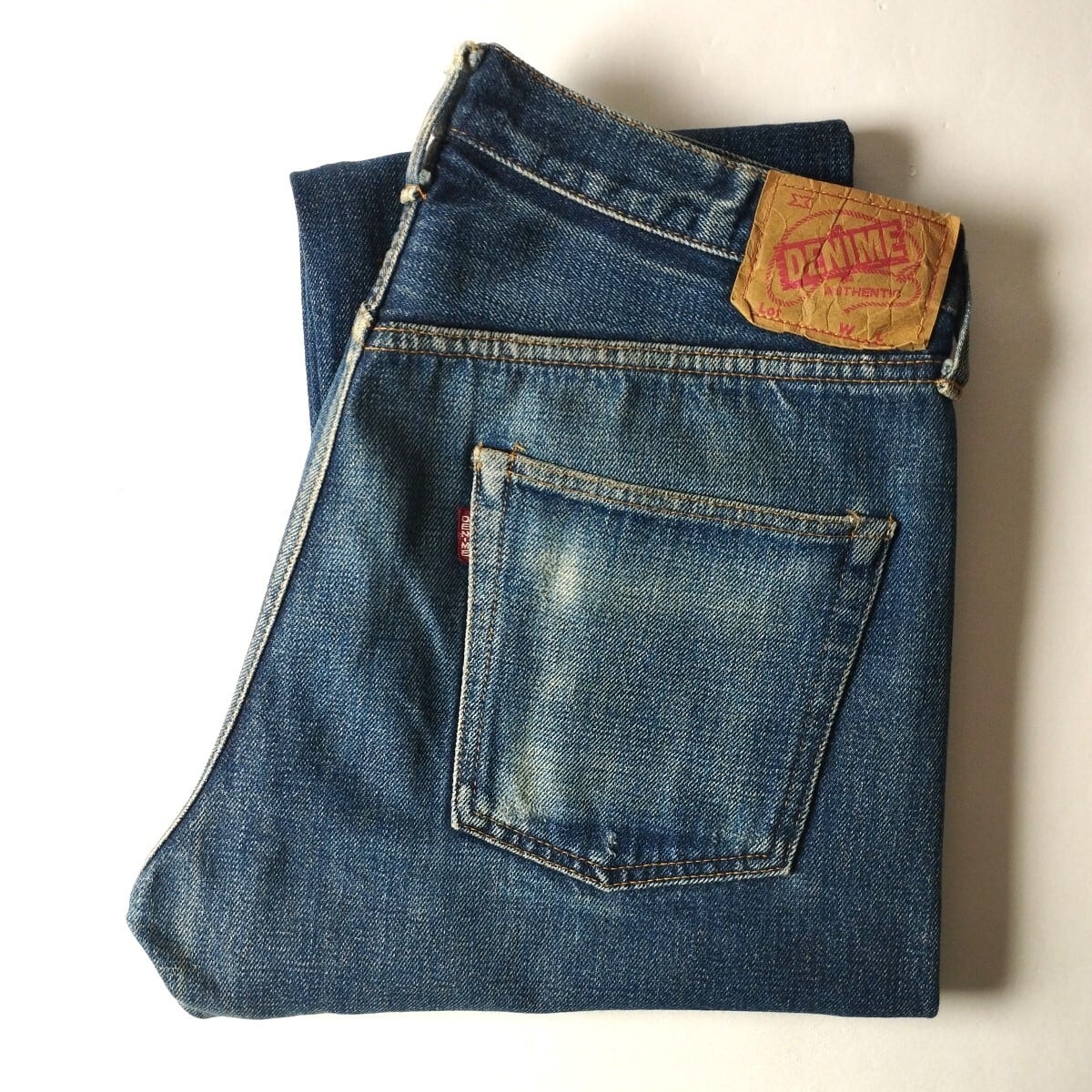 旧ドゥニーム DENIME 66モデル ボタンフライ セルビッジジーンズ 赤耳 赤タブ 紙パッチ W実寸91cm 髭蜂の巣 m0825-5