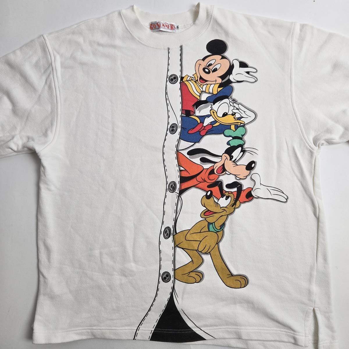 90’s RAY SUMMERS ディズニープリントだまし絵スウェットシャツ トレーナー ミニ裏毛 L ホワイト ミッキードナルドグーフィープルート ヴィンテージ m0924-7