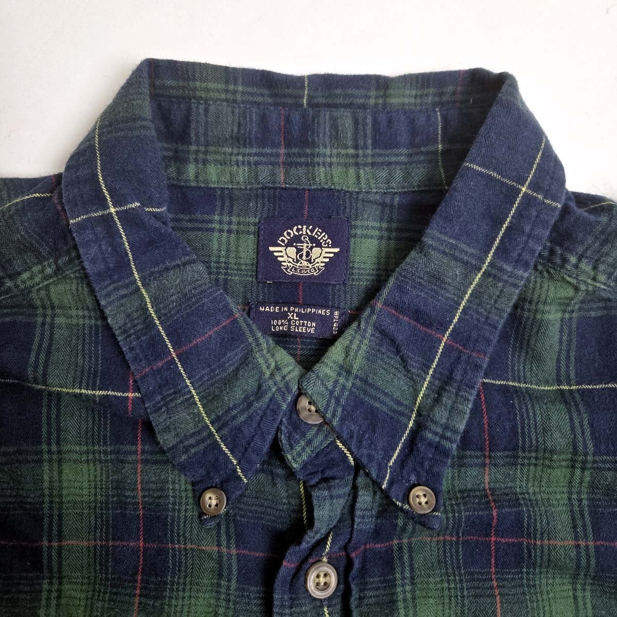 ドッカーズ DOCKERS コットン100% チェック柄ボタンダウンフランネルシャツ ビエラ XL グリーン m1003-12