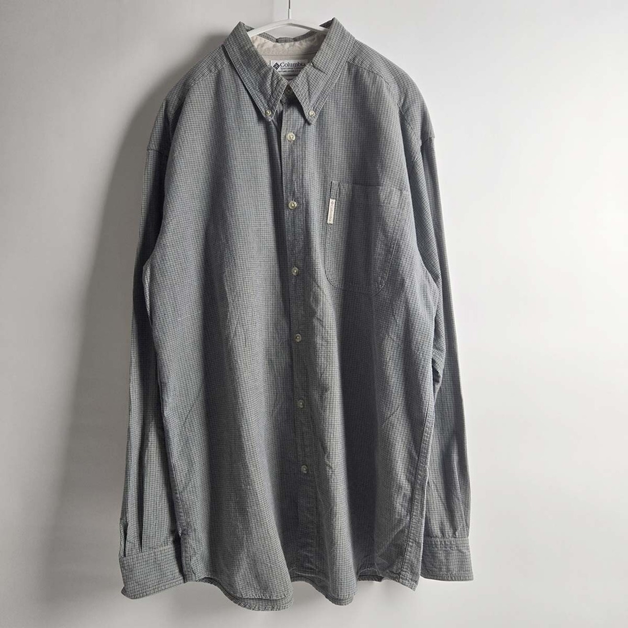 コロンビア Colombia コットン100% チェック柄ボタンダウンシャツ 長袖 XL グレー インド製 m1003-4