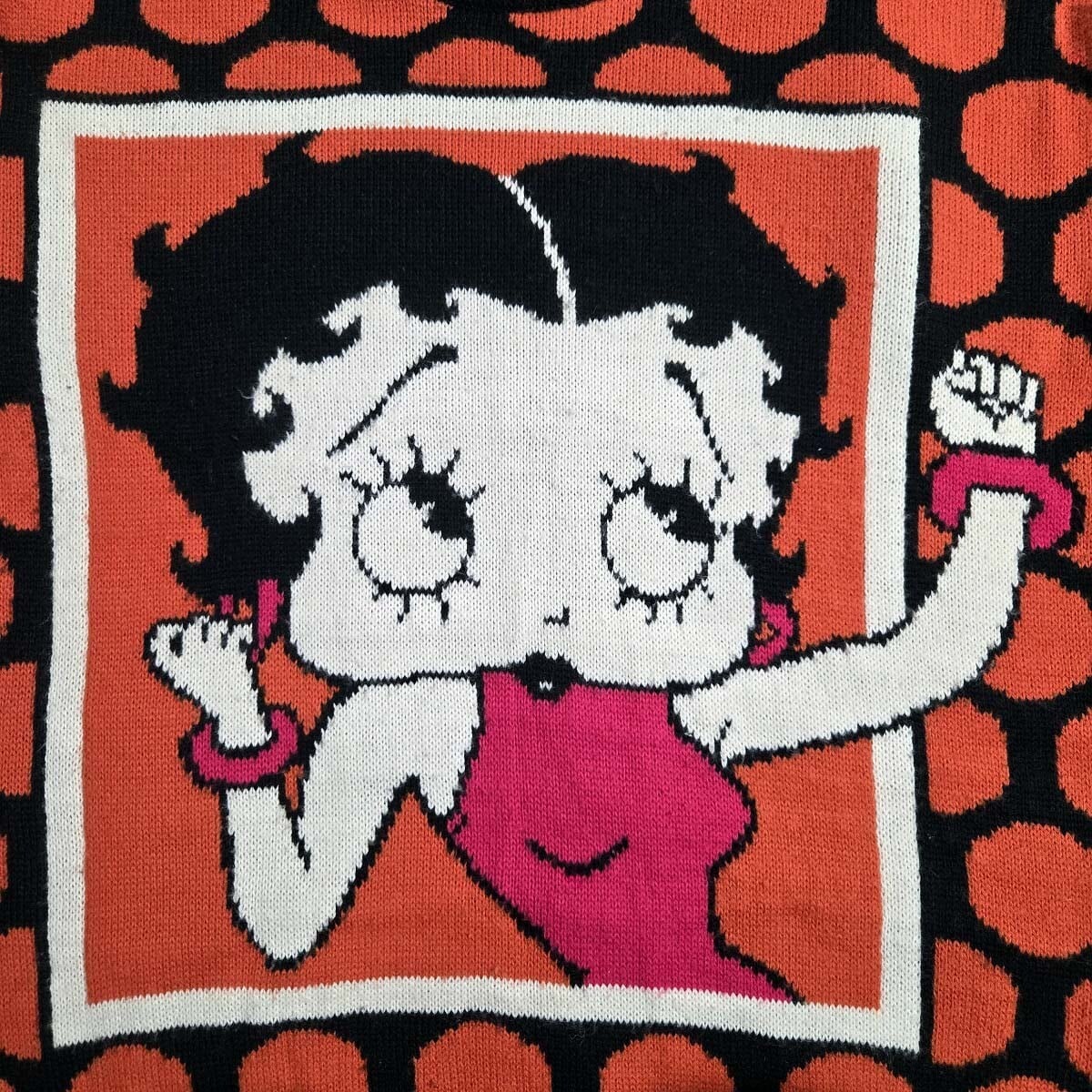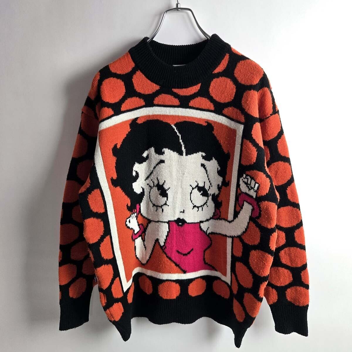 ベティちゃん総柄クルーネックニット ベティ・ブープ BETTY BOOP セーター 水玉ドット オレンジ 日本製 オールド ヴィンテージ ユニセックス