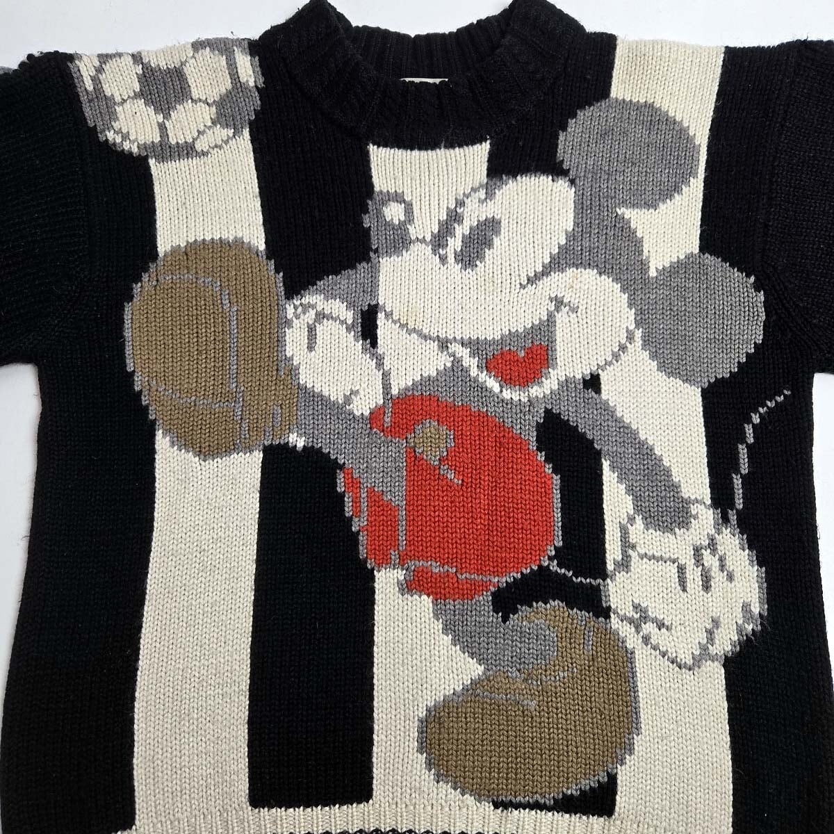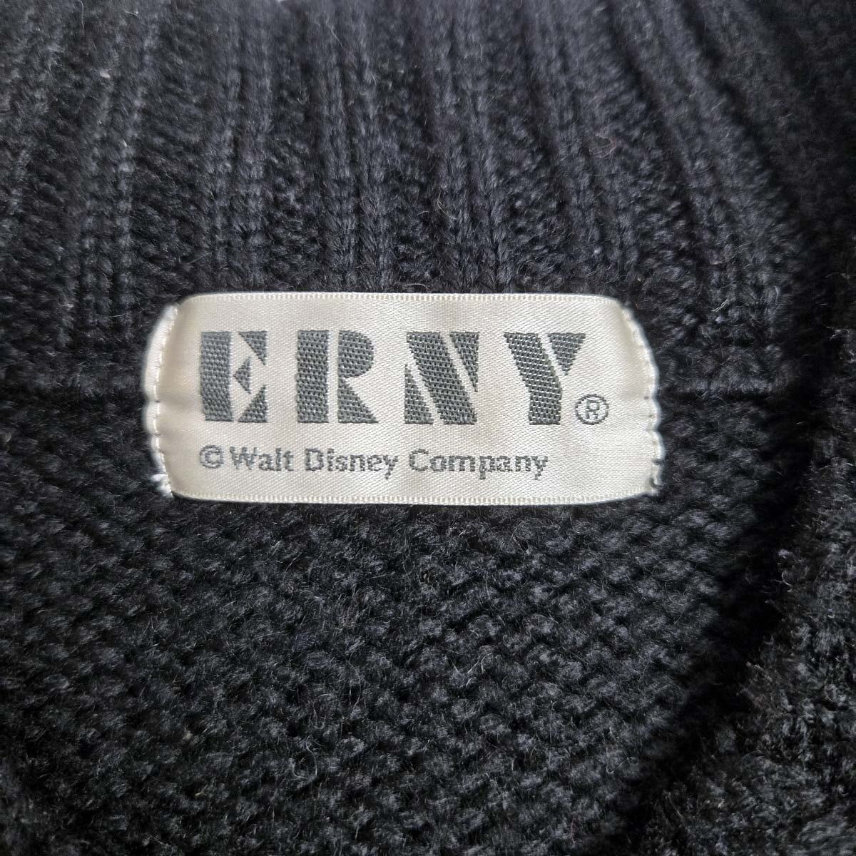 ミッキーマウス柄クルーネックニット セーター MickeyMouse ディズニー レディースMサイズ ブラック 袖3D編 オールド 国産ヴィンテージ エルニー ERNY 日本製 ユニセックス着用可
