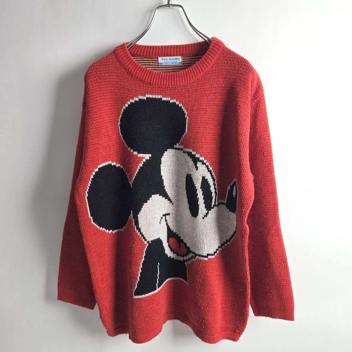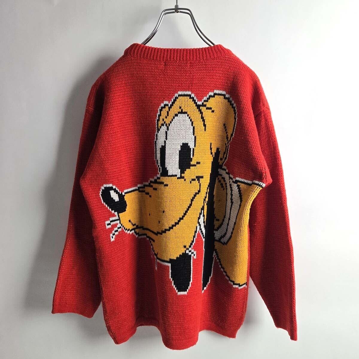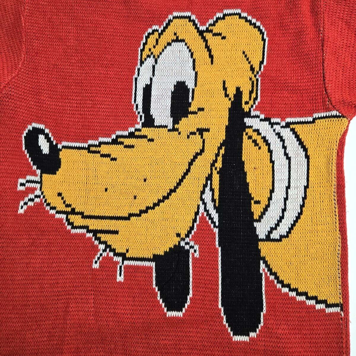 キャラクターニット ミッキーマウス プルート ディズニー Cox Combo クルーネック セーター 黒目ビッグフェイス M レッド 国産ヴィンテージ