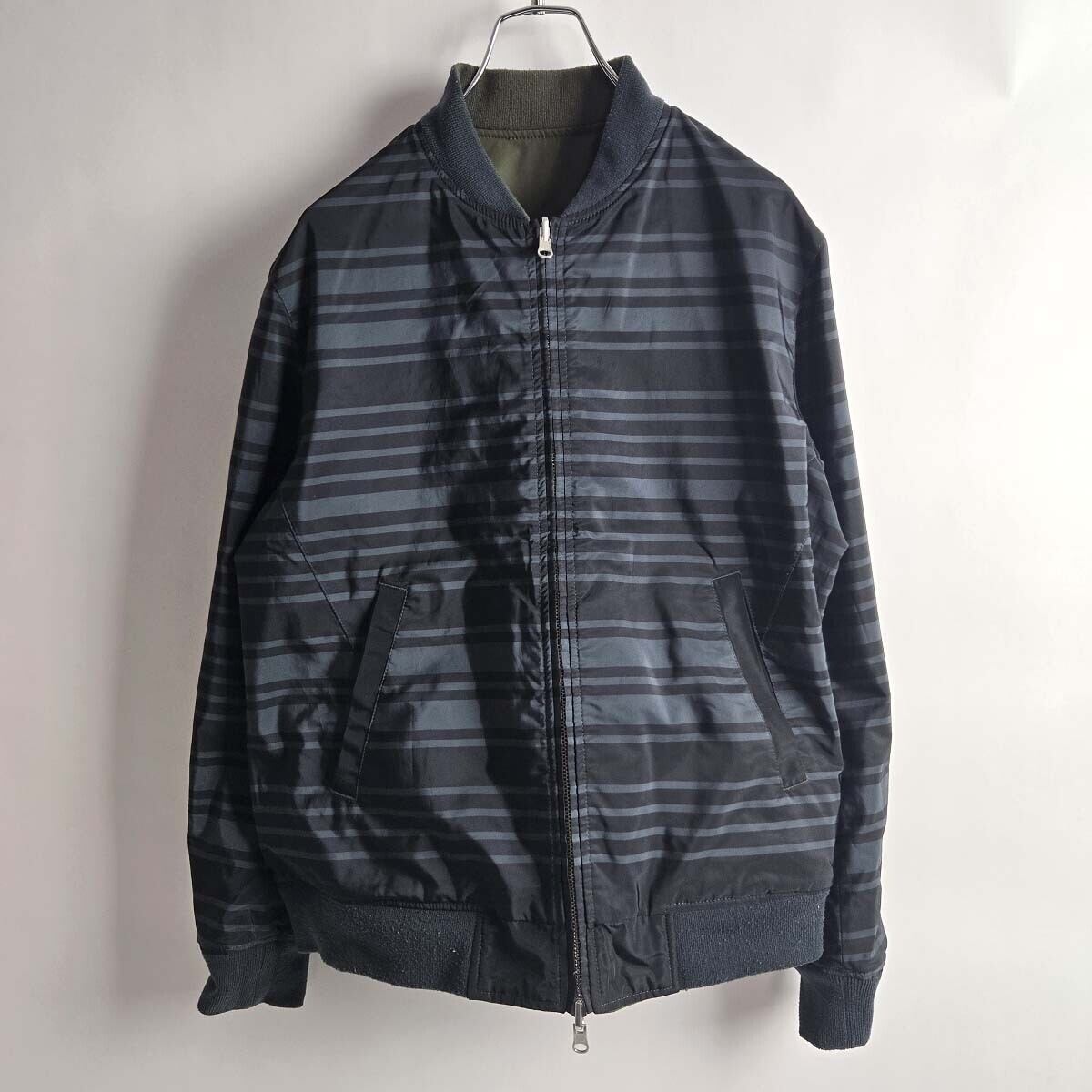 MA-1フライトジャケット ナノユニバース nano・universe リバーシブル ミリタリー ブルゾン ソリッド×ボーダー柄 L オリーブ×ネイビー