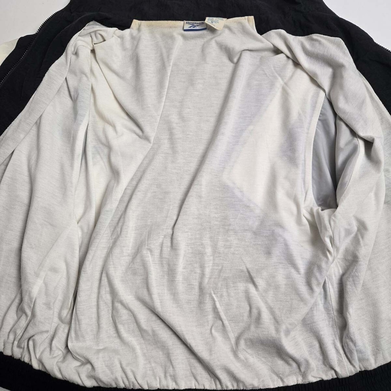 ナイロンジャケット 90's リーボック Reebok ロゴ刺繍 ジップアップ シャカシャカ M ブラック オールド ヴィンテージ フィリピン製