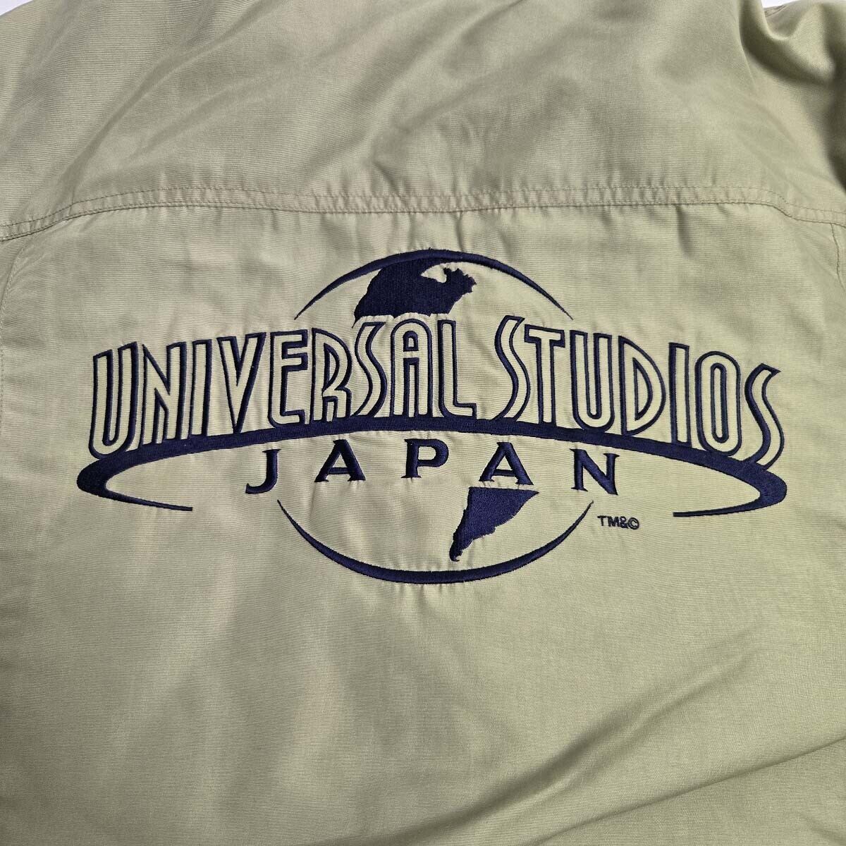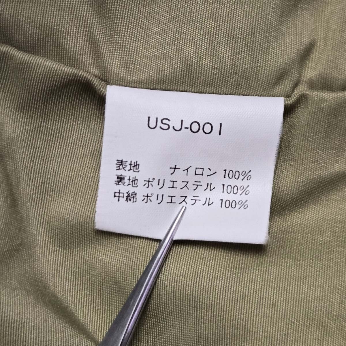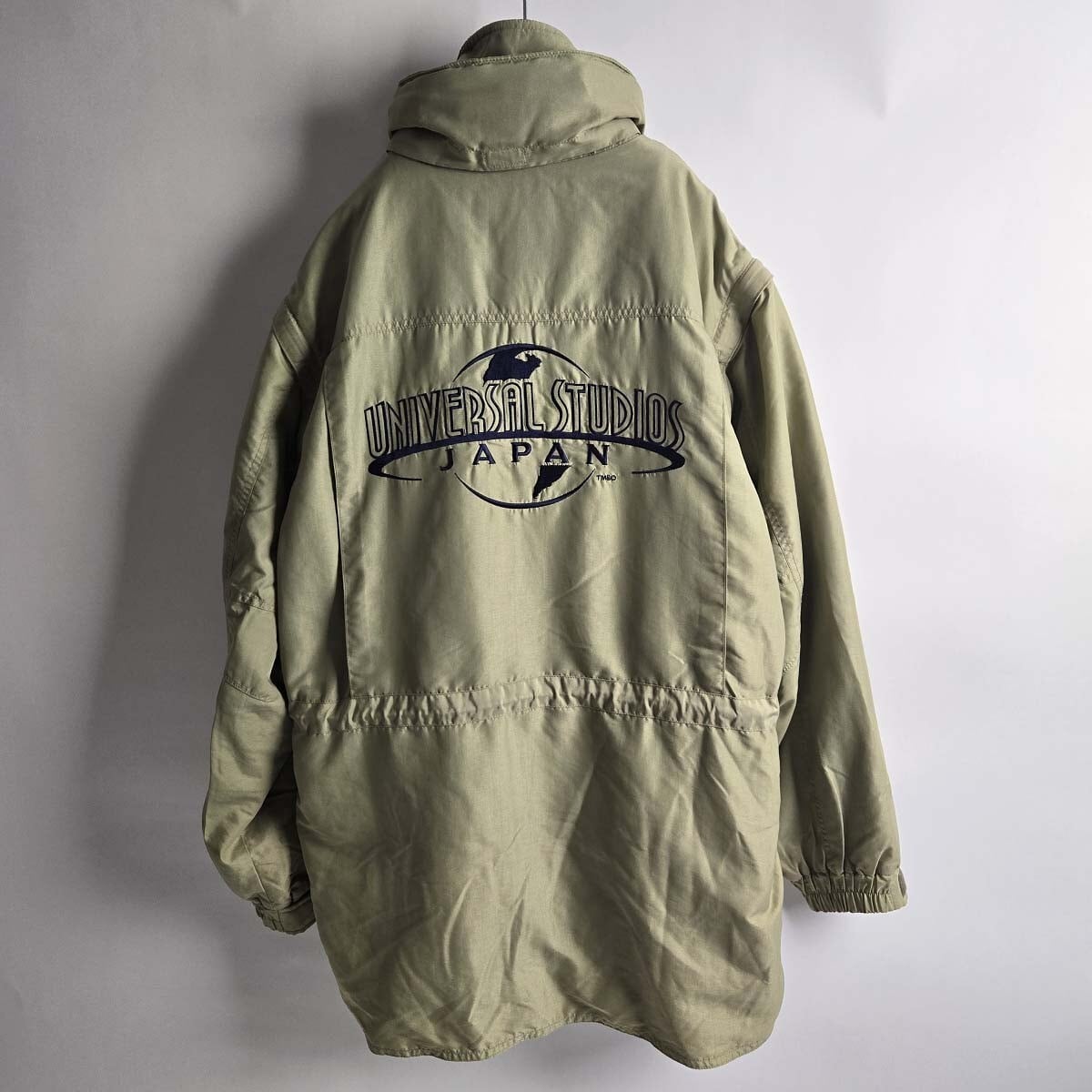 中綿ミリタリージャケット UNIVERSAL STUDIOS JAPAN 背面ロゴ刺繍 袖着脱可 ライナー付 フード収納可 マルチポケット L カーキ 希少