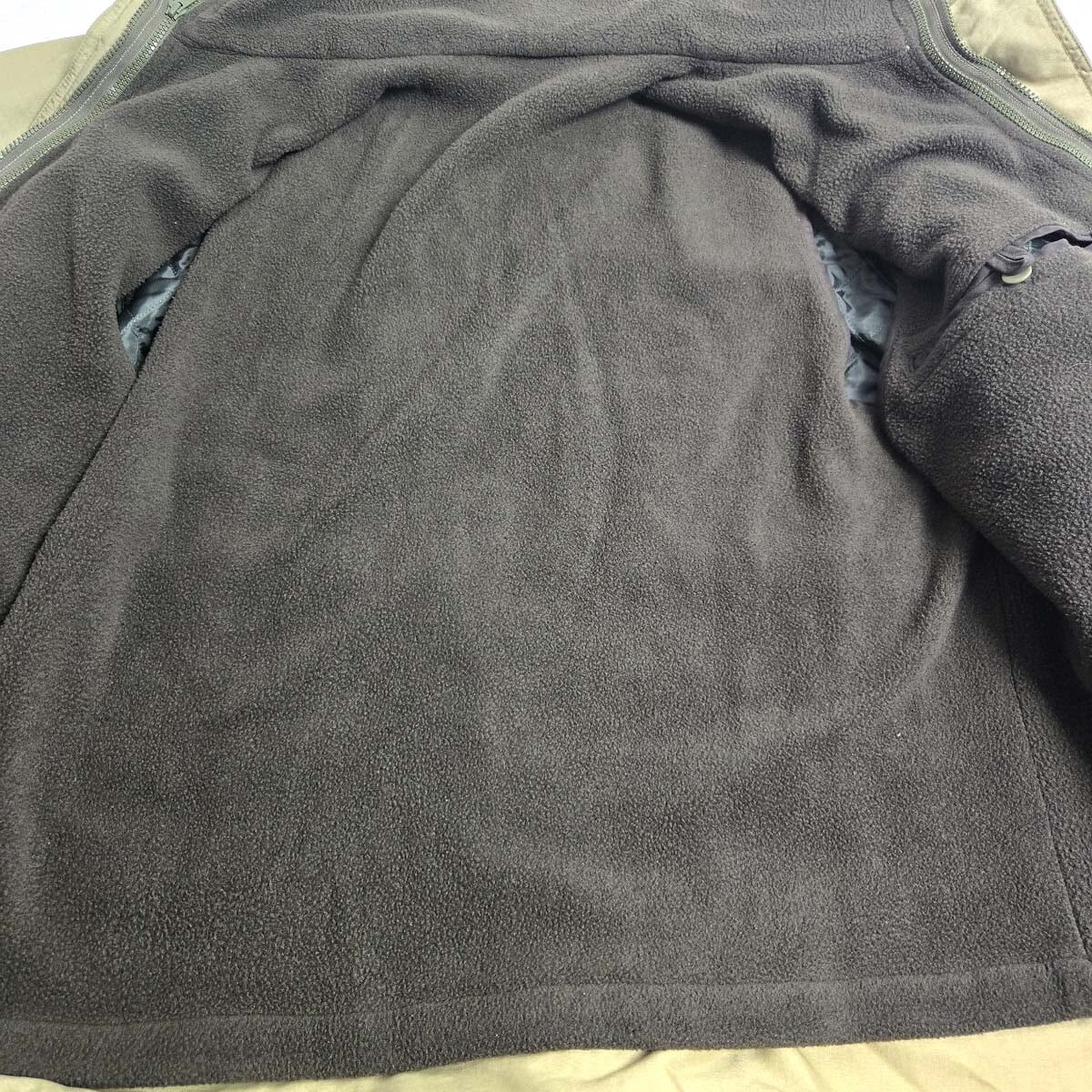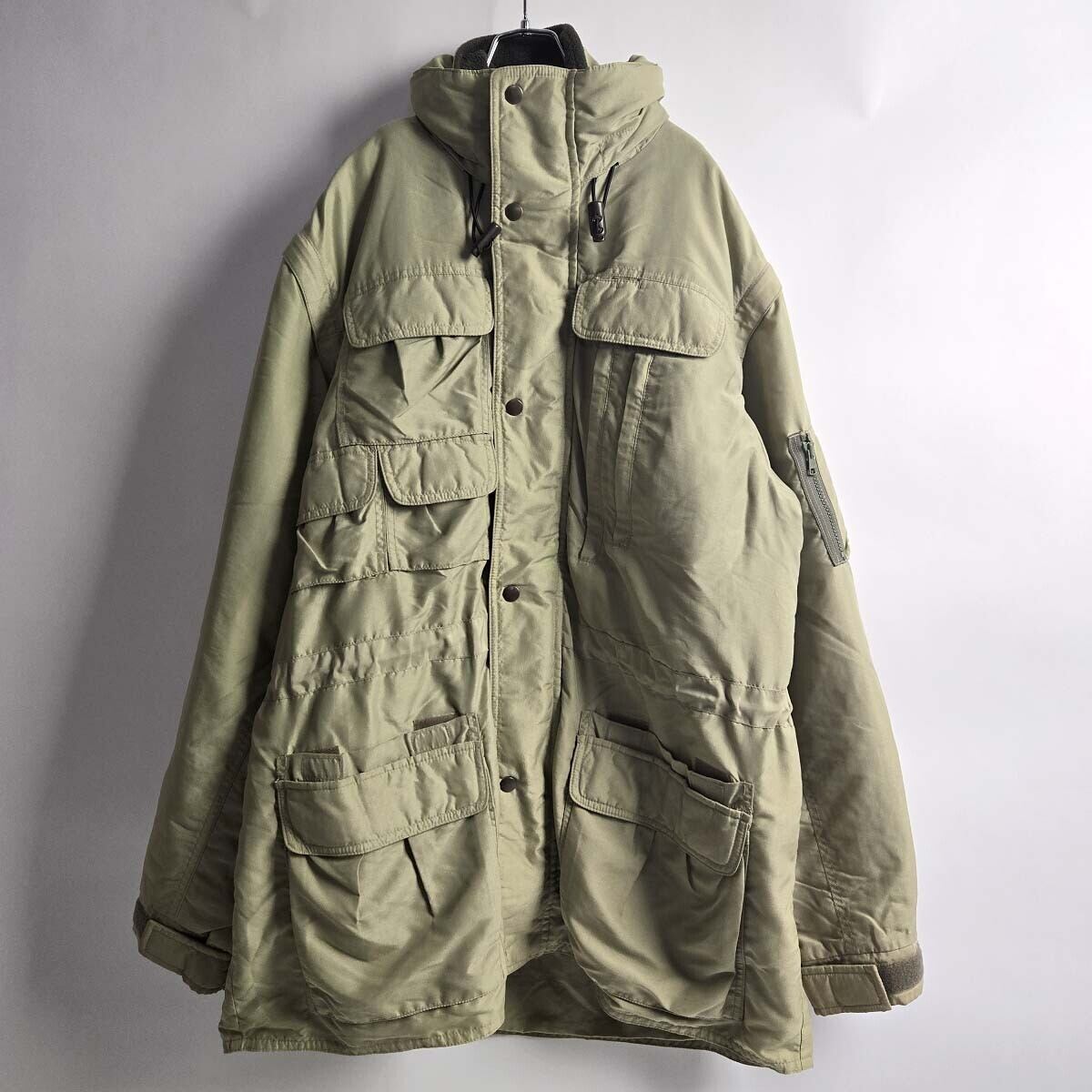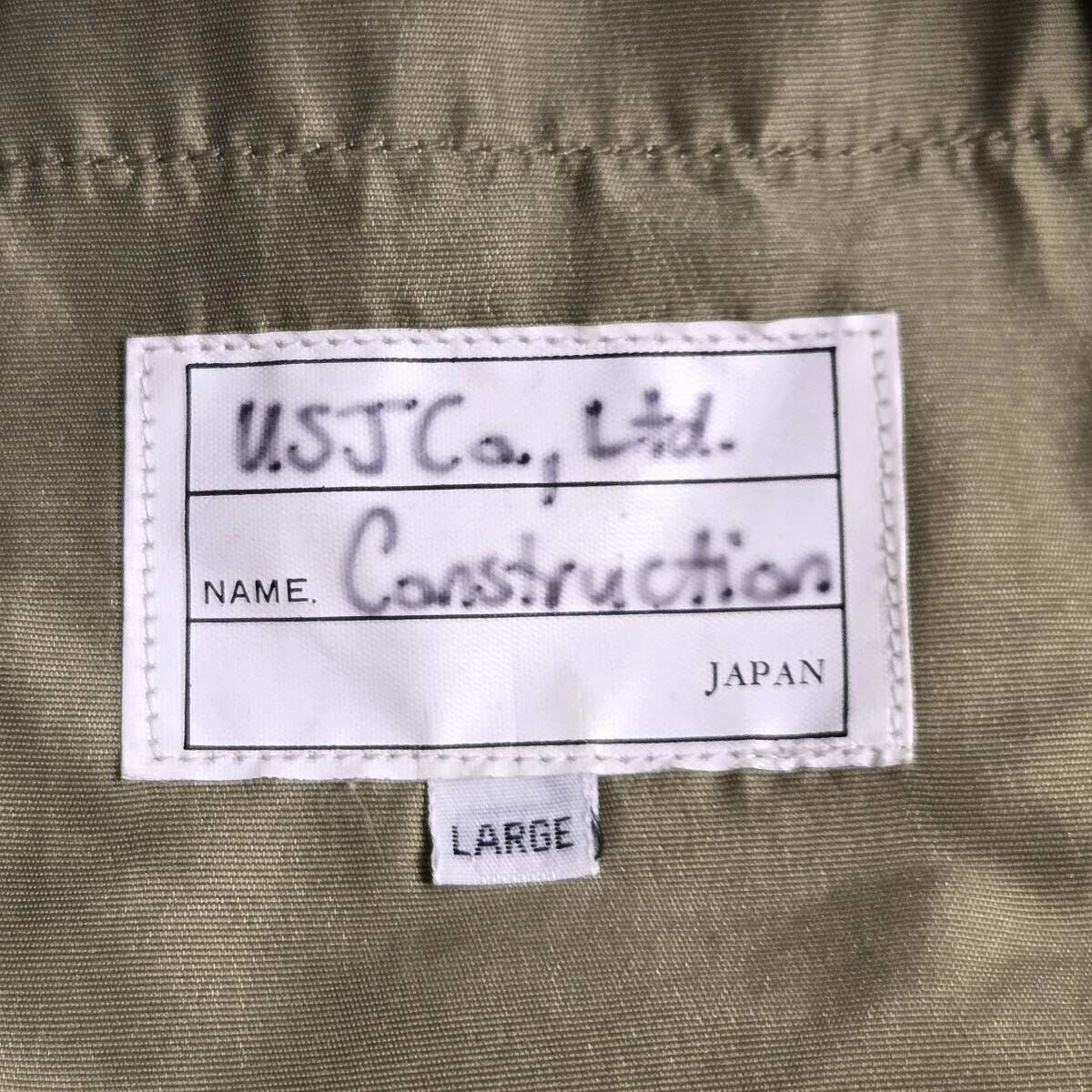 中綿ミリタリージャケット UNIVERSAL STUDIOS JAPAN 背面ロゴ刺繍 袖着脱可 ライナー付 フード収納可 マルチポケット L カーキ 希少